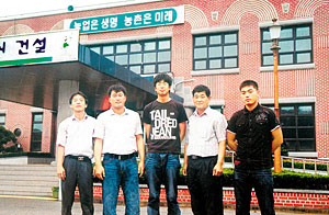 <왼쪽부터 당진군농업기술센터 임상혁 지도사, 서근원 당진군4-H본부 사무국장, 이원규 회원, 김석진 군본부 회장, 김진국 군4-H연합회장이 함께해 이 총무를 응원하고 격려했다.>