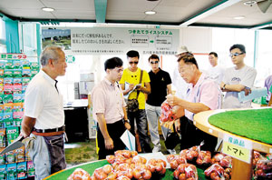 영농교육-판매교육 등 운영현황을 살펴보는 연수단. 일본농업실천학교 및 전국청소년교육진흥회를 방문한 4-H회원과 지도자. 방문농장 및 기관에 기념품을 전달하는 백중걸 연수단장. 일본의 농산물판매와 유통과정을 살펴보았다. 연수단이 머물며 체험활동을 가진 팜스테이농가. 금강산도 식후경…직접 느껴보는 일본의 음식맛!