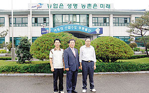 | <울산광역시농업기술센터 정영환 지도사(왼쪽)와 박홍규 부회장, 박재운 농업지원과장(오른쪽).> |