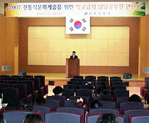 전통식생활의 우수성과 식문화를 계승하고 안전한 농산물의 소비촉진을 위한 학교급식 담당자 교육이 실시됐다.〈사진〉