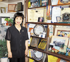 | <가게 벽면에 전시된 각종 상장과 상패를 통해 신 회장의 열렬한 4-H사랑과 사회봉사정신을 엿볼 수 있다.> |