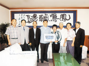| <신금순 예천군4-H본부 회장은 김수남 예천군수(왼쪽에서 네 번째)를 예방하고, 장학금 500만원을 기탁했다.> |