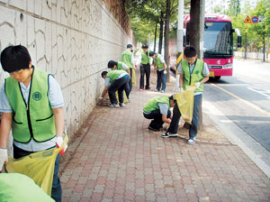 2년 째 다른 학생들보다 20분 일찍 나와 학교 주변을 청소하는 월산중4-H회의 섬김이 아름답다. |