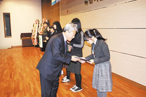 | <김천시4-H인한마음대회에서 우수4-H회원에게 장학증서를 수여하고 있는 이기양 회장.> |