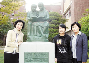 김순희 교감과 김유빈 회장, 이진 지도교사(왼쪽부터). |