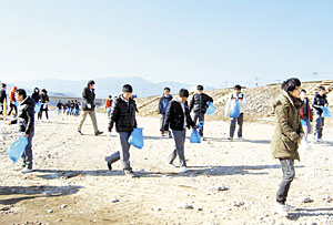 이날 행사에 참여한 학생회원과 영농회원들은 남대천 둔치 주변의 쓰레기와 수확이 끝난 농경지 주변의 폐비닐, 빈 농약병 등을 수거하며 푸른 농촌 만들기에 앞장섰다.