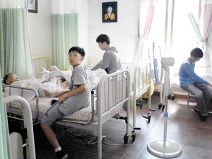 | 학교 근처에 있는 양로원을 찾아가 몸이 불편하신 어르신들의 손과 발이 되어드리고 있다. |