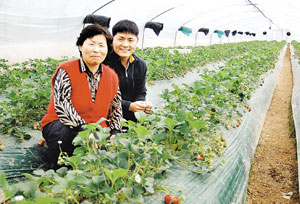 “딸기는 농약이 필요 없는 작물로 물 조절이 딸기의 당도와 크기를 결정하는 키포인트”라고 설명하는 그는 물을 많이 주면 병도 쉽게 생길뿐더러 크기가 작고 맛이 없어진다고 했다. 딸기 농사를 시작한지 8년이 됐지만 각각의 하우스 상황에 맞도록 물을 관리하는 데 가장 신경을 많이 쓰고 있다고. 조 회장의 딸기 하우스는 3중 비닐로 되어 있으며, 각 하우스마다 자동온도감지센서가 있어 일일이 신경 쓰지 않고 적정재배온도를 유지하고 있다. 또한 각 하우스마다 소비(巢脾) 4~5개가 들어있는 벌통을 비치, 벌을 이용해 딸기 수정을 하고 있다. 이렇게 친환경농법으로 딸기를 재배한 결과 작년까지 무농약 인증 농가로 지정됐으며, 올해도 다시 무농약 인증 농가 지정을 신청해 놓았다.