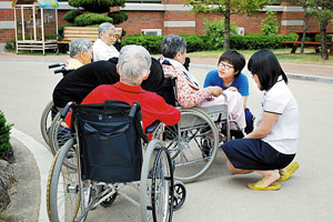 | 오상중4-H회는 매달 두 번 선산에 있는 성심요양원에서 거동이 불편하신 노인환자들을 보살피는 봉사활동을 하고 있다. |