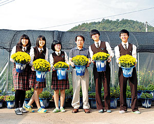 도 지도교사와 4-H회원들의 안내를 받아 들어선 아담한 비닐하우스에는 오상중 4-H회원들이 정성껏 가꾸어가고 있는 국화들이 노오란 꽃을 피워내고 있었다. 도 지도교사와 오상중4-H회원들의 순수하고 따뜻한 마음이 노란 국화꽃에 고스란히 담겨져 있는 듯하다.