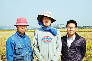 | 장동진 회장과 늘 함께하는 부친 장상순 씨(왼쪽)와 서산시농업기술센터 송진희 지도사(오른쪽) |