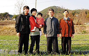 3대가 모여 사는 단란한 가정을 꾸리고 있는 노태명 회장 (오른쪽부터 모친 김복동 씨, 부친 노완석 씨, 아내 김태정 씨, 딸 노은미)