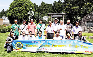 한국4-H본부에서 주관한 2009년도 핵심 영농4-H회원 일본연수에 참가해 농업실천학교를 탐방한 노태명 회장 (아랫줄 왼쪽에서 첫 번째)