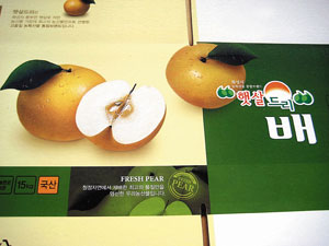 | 노진래 회원이 생산한 배 포장박스. 올해 수확부터 내년 햇배가 나오기까지 1년내내 출하하고 있다. |