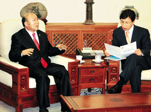 | 이정우 회장은 지난 3월 14일 안희정 충남도지사를 예방하고 관내 4-H육성과 농업발전에 대해 대담을 나누었다. |