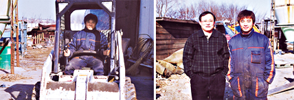 | <농기계를 이용해 농장을 정리하는 김성제 회원(좌). 고양시기술센터 신형기 지도자와 함께> |