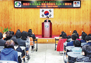 | 지난 4월에 있었던 영동군4-H연합회장 이취임식에서 취임사를 통해 회장으로서 포부를 밝히고 있는 박광춘 회장. |