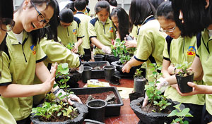 | 디시가든만들기 과제활동을 통해 자연사랑을 실천하며 즐거워 하는 제주서중학교4-H회원들 |