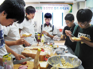 또한 제주시농업기술센터의 협조로 우리농산물을 이용한 샌드위치만들기 과제활동을 통해서 농산물의 가치를 느끼고 4-H인으로서 농심을 살펴보는 계기도 마련했다.