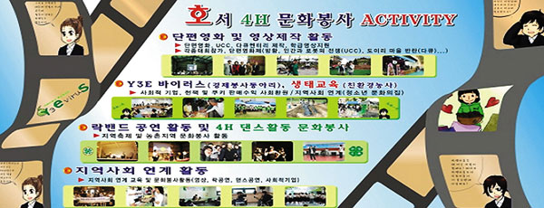 | 호서중학교4-H회는 4-H문화봉사활동을 현수막으로 제작하고 전시해 4-H활동의 우수성을 홍보하는데 앞장서고 있다. |