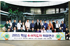 | 지난해 한국4-H본부에서 주관한 ‘핵심 4-H지도자 해외연수’에 참가하여 국제적 견문을 넓혔다. 뒷줄 왼쪽에서 일곱 번째가 나용준 감사. |