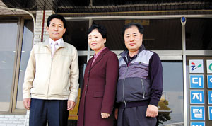 | 태안군 이원면사무소 앞에서 명월례 면장(중앙), 이용복 한국4-H본부 부회장(좌측), 유영철 충남4-H본부 부회장(우측)과 함께. |