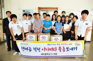 | 어려운 이웃에게 따스한 마음 전하는 것이 몸에 밴 내덕중학교 4-H회원들. |