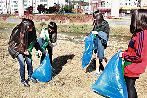 경안천에서 정기적으로 쓰레기를 줍는 등 봉사활동을 펼친다. |