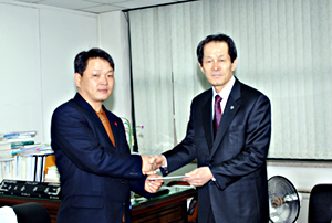 김성원 전남4-H후원회 이사가 지난 8일 한국4-H본부를 방문해 농수산물홈쇼핑을 통해 판매한 수익금을 4-H기금으로 김준기 회장에게 전달했다.