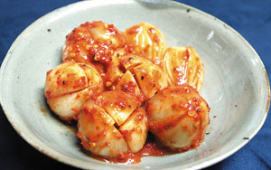 우선 양파 김치를 추천한다. 양파김치는 시원하고 달큰하면서 알싸한 맛을 지닌 별미김치다. 양파김치를 담글 때는 양파를 잘 골라야한다. 단단하면서도 작은 양파가 좋다. 양파를 손질하고 깨끗이 씻어 십자로 칼집을 낸다. 양파는 멸치액젓으로 절이는데, 멸치액젓을 붓고 30분쯤 지나 숨이 죽으면 멸치액젓을 따라낸다. 양파김치 양념을 만들 때는 고춧가루에 싱싱한 붉은 고추를 거칠게 갈아 넣으면 더 좋다. 여기에 멸치액젓과 다진 마늘, 매실청, 검은깨 등을 넣어 맛이 잘 어우러지도록 30분 정도 숙성시킨 후 양파를 넣어 버무려주면 된다. 양파김치는 익어야 더 맛있다. 하루, 이틀 밖에 두었다가 냉장고에 넣어두고 먹으면 된다.