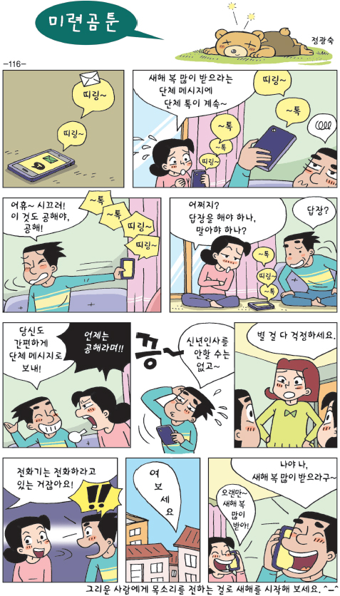 [미련곰툰 116] 그리운 사람에게 목소리를 전하는 걸로 새해를 시작해 보세요. ^-^
