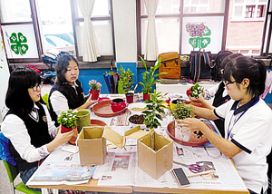 지난해 4월 재활용 플라스틱 공병에 실내식물을 심어 교내 환경미화에 활용하기도 했고, 7월에는 학교 텃밭에 토마토, 백합, 오렌지 자스민, 족두리꽃 등을 심어 아름다운 학교 만들기에 일조했다.