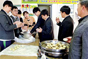 취재 중에 과제활동으로 만든 막걸리빵을 맛보았다. 새벽 일찍 반죽해 몇 시간 발효시켜 막 쪄냈다고 했다. 식당에서는 회원들이 반죽을 손바닥으로 동그랗게 굴리며 빵을 만들고 있었다. 남학생들임에도 불구하고 즐겁게 빵을 만드는 모습에 저절로 미소가 나왔다.