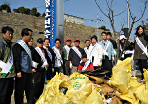 통영시농업기술센터(소장 백승술)와 함께한 이 활동은 5월에 있을 한려수도 조망 케이블카 설치공사 마무리와 준공에 대비한 것으로 주변 농지에 버려져 있는 영농 쓰레기 및 67호선 도로변 쓰레기 등 3톤 가량의 쓰레기를 수거했다.