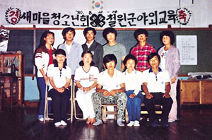 | <철원군4-H연합회장 시절의 야영교육에서 동료들과 기념 촬영(앞줄 왼쪽에서 세번째)> |