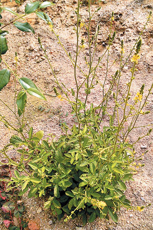 줄기는 여러 개의 가지를 치면서 1m에 가까운 높이로 자란다.
