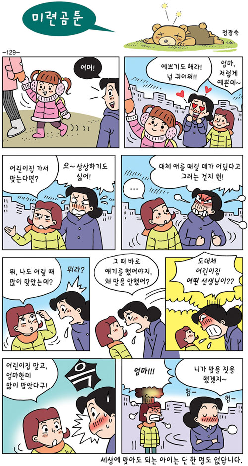 [미련곰툰 129] 세상에 맞아도 되는 아이는 단 한 명도 없답니다.