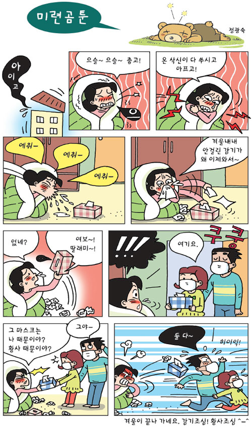 [미련곰툰] 겨울이 끝나 가네요. 감기조심! 황사조심 ^-^