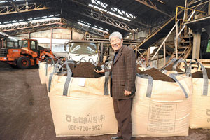 “농협흙사랑은 1994년 3월에 설립된 농협중앙회 자회사로 친환경 농산물 생산에 필요한 양질의 유기질 비료와 자재를 저렴하게 생산·공급함으로써 농가의 생산비 절감과 소득증대 및 농산물 품질 향상에 힘쓰는 괴산군 소재의 전문비료업체입니다.”라고 힘주어 말하는 김창한 대표.