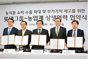 농협·농림축산식품부·롯데그룹은 이번 업무협약을 통해 ▲경쟁력 있는 가공 농식품 신제품 개발 ▲국내외 유통망을 활용한 우리 농식품 판매 확대 ▲국내 농축산물 할랄 인증 지원 및 할랄 시장 개척 지원 ▲농업의 6차 산업화 촉진을 통한 농식품 부가가치 제고 등을 위해 상호 협력키로 했다.
