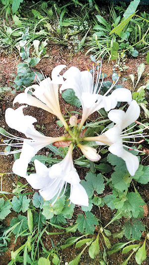 | 위도상사화는 잎과 꽃이 서로 만나지 못한다하여 ‘상사화(相思花)’란 이름을 얻었다고 전해진다. |