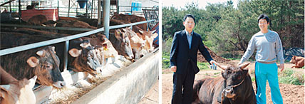 | <건강한 소들의 모습(왼쪽)과 경상남도농업기술원 조길환 지도사와 함께(오른쪽).> |