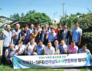 전라남도4-H본부(회장 임재상)는 지난 10일 역대 도4-H연합회장 20명과 지도자 등 30여명이 참석한 가운데 ‘역대(31~58대) 전라남도4-H연합회장 협의회’를 개최했다.〈사진〉