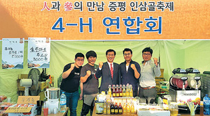충청북도 증평군4-H연합회(회장 이승환)는 지난달 8일부터 11일까지 나흘간 인삼골 축제에서 농산물을 전시하고 판매하는 홍보 부스를 운영했다.〈사진〉