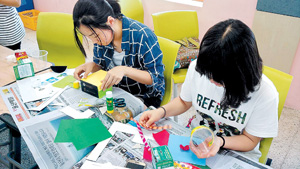 재활용품을 이용해 4-H그린하트 나눔저금통을 만들었다. |