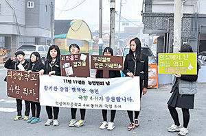 경상북도 의성여자중학교4-H회(교장 손장식, 지도교사 김가람) ‘국향 4-H’는 지난 11일 교문 앞에서 의성 쌀로 만든 가래떡과 농업인의 날에 대한 자료를 배포하며 전교생과 교직원, 지역주민들에게 농업인의 날을 홍보했다.〈사진〉