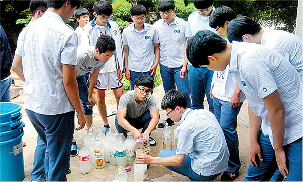 | 농업·환경·생명에 대한 이해를 높이고 인성과 창의성을 기른 4-H회원들이 ‘대한민국 농·생명 청소년홍보대사’ 자격을 취득했다(사진은 경남 통영고등학교4-H회원들이 EM발효액을 만드는 장면). |