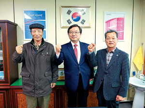 | 취재에 동행한 하왕봉 한국4-H본부 부회장(사진 왼쪽), 나용준 경남4-H본부 회장(사진 오른쪽)과 함께 경남4-H 활력화를 위해 굳은 의지를 다진 강양수 경상남도농업기술원장. |