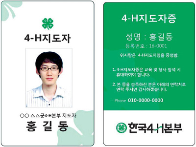 4-H이념에 동참하여 지역사회에서 4-H청소년 육성을 위해 힘쓰고 있는 4-H지도자들에게 4-H지도자증이 발급된다.