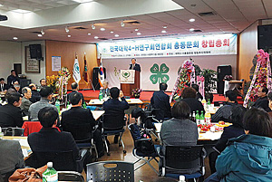 | 4-H정신으로 성장해 우리 사회 여러 분야에서 활약해온 대학4-H인들이 지난 27일 한국4-H본부 5층 강당에서 전국대학4-H연구회연합회총동문회 창립총회를 개최했다. |